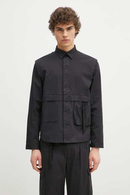 Košile Alpha Industries Utility Overshirt pánská, černá barva, relaxed, s klasickým límcem, 756116.03