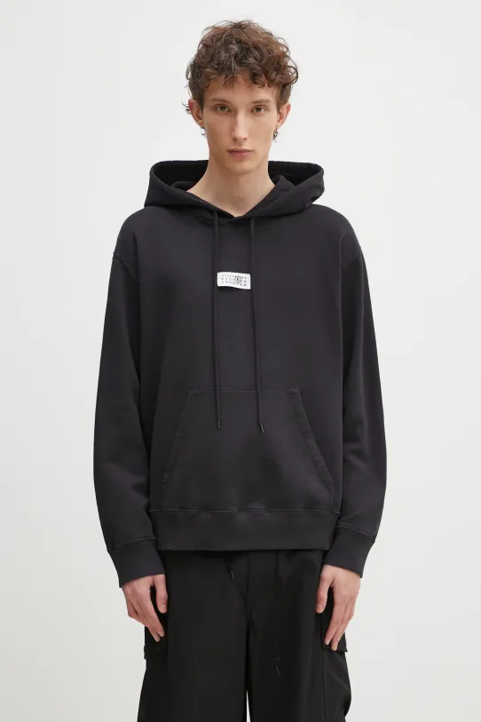 Pamučna dukserica MM6 Maison Margiela za muškarce, boja: crna, s kapuljačom, s aplikacijom, SH0GU0018