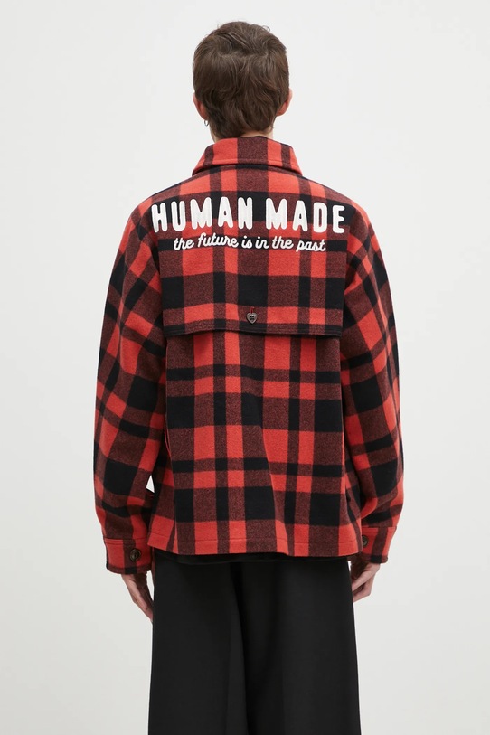 Human Made jachetă tip cămașă din lână Wool Hunting Jacket culoarea roșu, de tranziție, oversized, HM28JK031